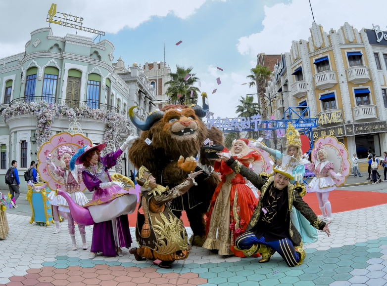 在公共空间巡游板块,流动的9部特色巡游剧目沿乐园动线展开,实现一步一景、一景一戏的沉浸式体验。国内首创百老汇风格音乐偶剧《美女与野兽》,以2.4米巨型外骨骼人偶还原18世纪法国宫廷风情,大人小孩争相互动;《唐宋奇匠》则让唐代酿酒师、宋代绣娘走出历史典籍,游客可接过桂花酿小样、学绣苏式荷包,在行走中触摸千年市井烟火;而蒸汽朋克风的《绿野仙踪奇境历险记》,以4米高可行走铁皮机器人偶,将国宝童话变为可触摸的奇幻梦境。